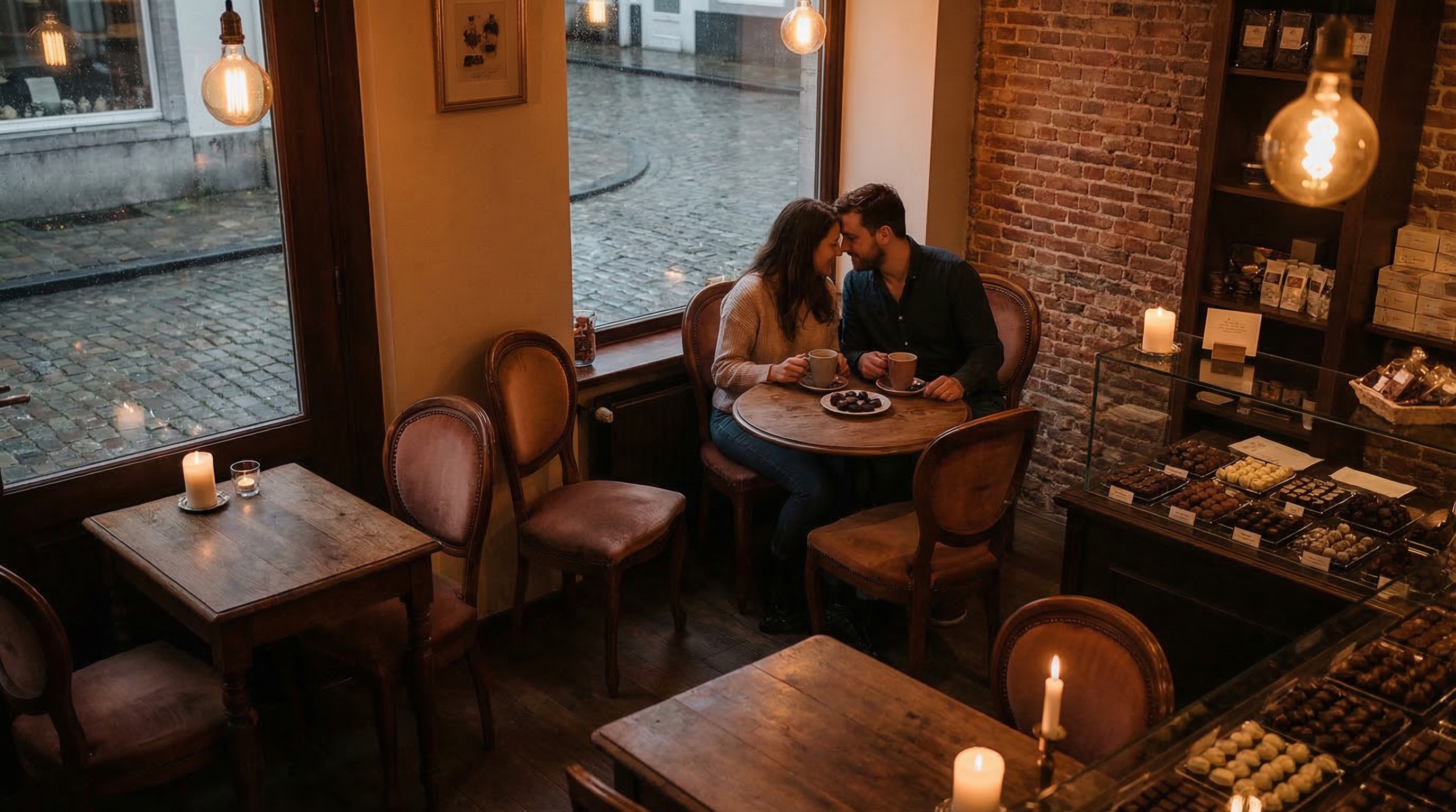 L'atmosphère féerique de Bruges rend chaque rendez-vous spécial, mais ajoutez-y l'odeur du chocolat frais et vous avez la recette de la romance.